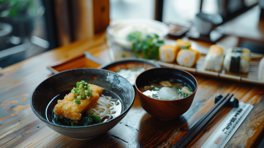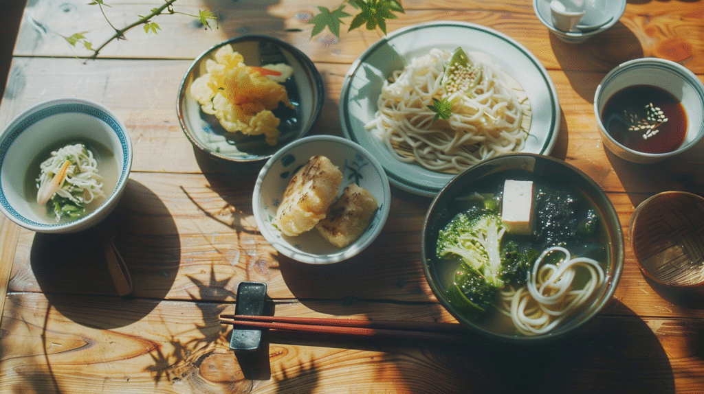 Les nouilles de sarrasin (soba) sont l’un des plats les plus courants de la cuisine japonaise végétarienne.