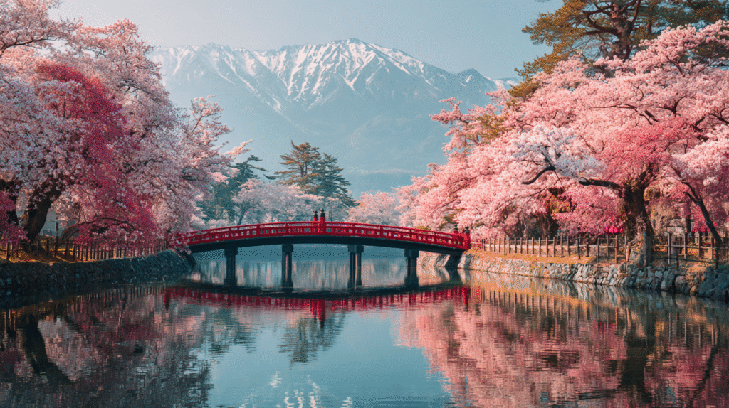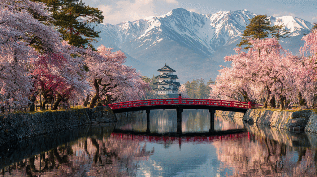 Il suffit d’un matin clair, quand l’air sent la pomme fraîche et la paille humide, pour comprendre ce qui rend Aomori si attachante. Au printemps, le parc du château de Hirosaki se couvre de fleurs comme un ciel tombé sur terre. Plus de deux mille cerisiers dessinent des allées ouatées, un pont rouge trace un trait vif sur l’eau du fossé, et l’ancien donjon, compact et élégant, veille avec sérénité.