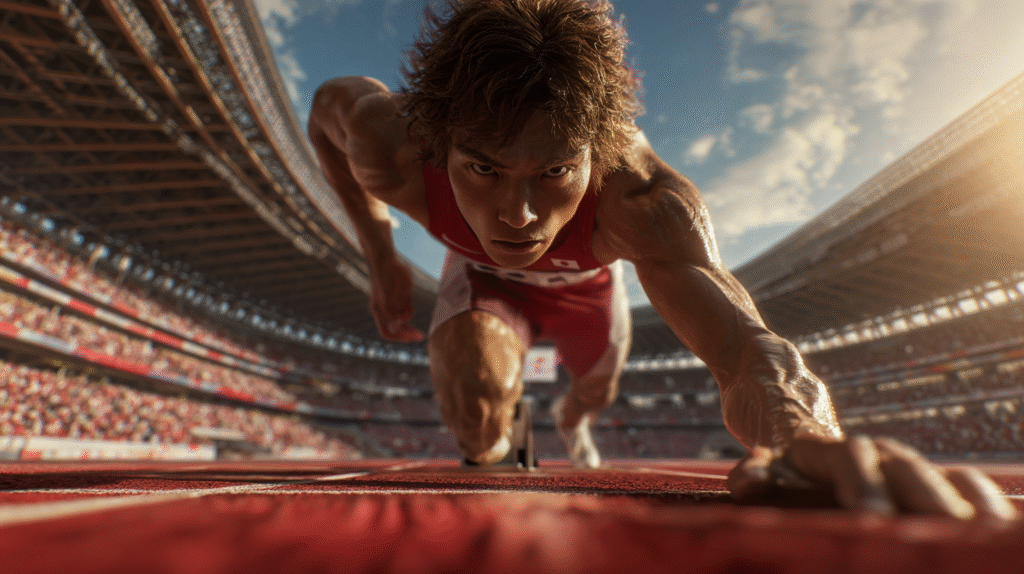 Imaginez un stade, le silence avant le départ… et soudain, un homme s’élance, non pas debout comme Usain Bolt, mais à quatre pattes, bondissant comme un guépard.
