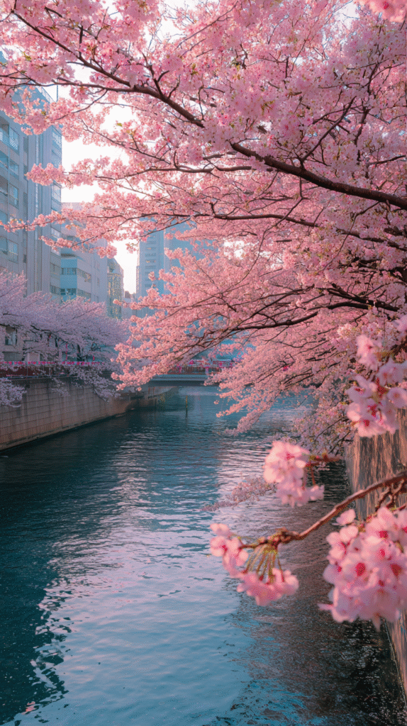 7. Cerisiers en fleurs au bord de l’eau