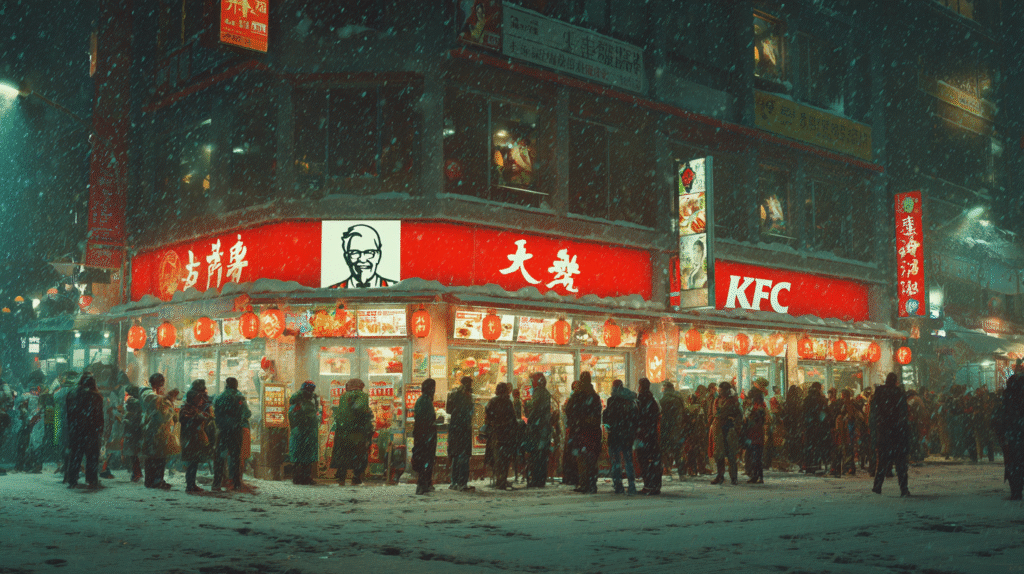 Chaque 24 décembre, les rues de Tokyo, Osaka ou Kyoto se transforment en scènes inattendues : des foules patientent pendant des heures devant un restaurant de fast-food. Les clients ne viennent pas y chercher un nouveau produit tendance, mais un repas bien précis : un seau de poulet frit signé KFC.