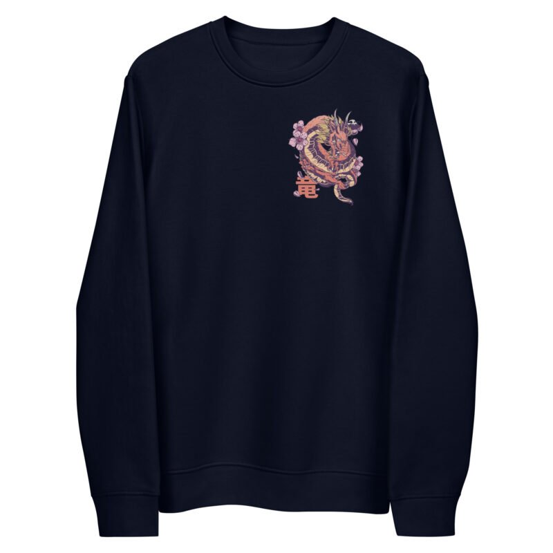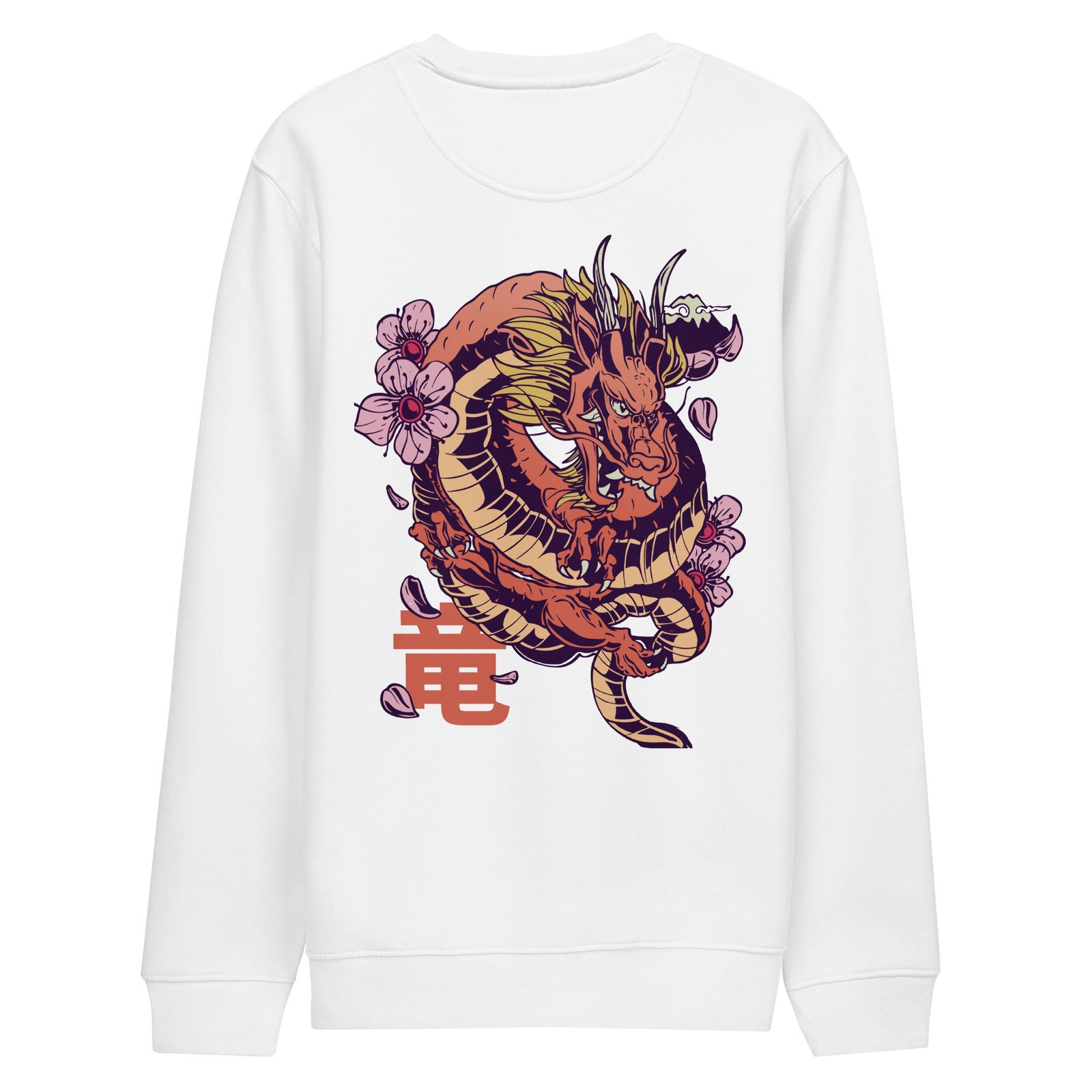 Ce splendide sweat arbore un magnifique dragon japonais à l’avant et à l’arrière. Symbole de force, de puissance et de sagesse, le dragon est bien évidemment une créature mythique de la mythologie nippone. Les fleurs de cerisier délicates qui l’entourent apportent une touche de douceur et d’élégance à ce design.
